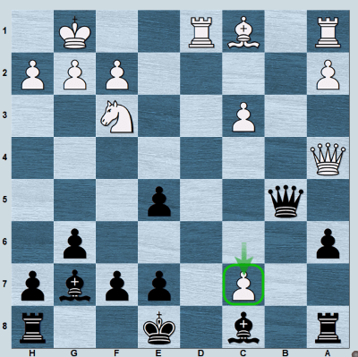 With his last move, Naroditsky played 16.c7!?, threatening Rd8 mate.