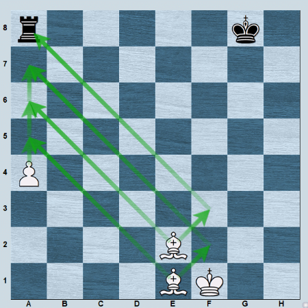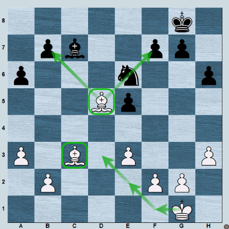 In this example, the power of one bishop is able to weaken the diagonals to make another one stronger.