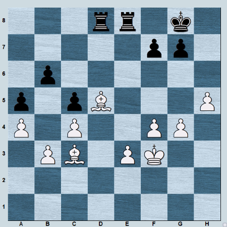 The bishop on d5 is on a great outpost and is closing the d file. Additionally, the bishops are aiming directly towards Black’s kingside. In such a position, white’s pawn advancement on the kingside with 1. g5 will prove decisive.