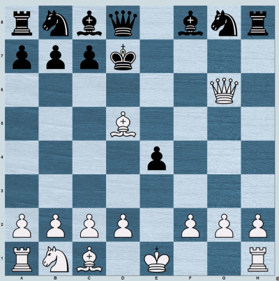 A more practical option for White is 7.Qg6 Kd7 8.Bd5