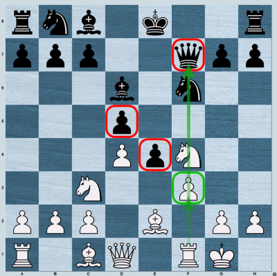We can clearly see the downside of the 6...Qf7 move, and why Black would love to have their Queen on g6, which we didn’t allow with the move 6.Nf4!