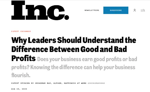 My spiritual teacher, Rao Srikumar, was writing an article for Inc. Magazine called “Good Profits, Bad Profits.”